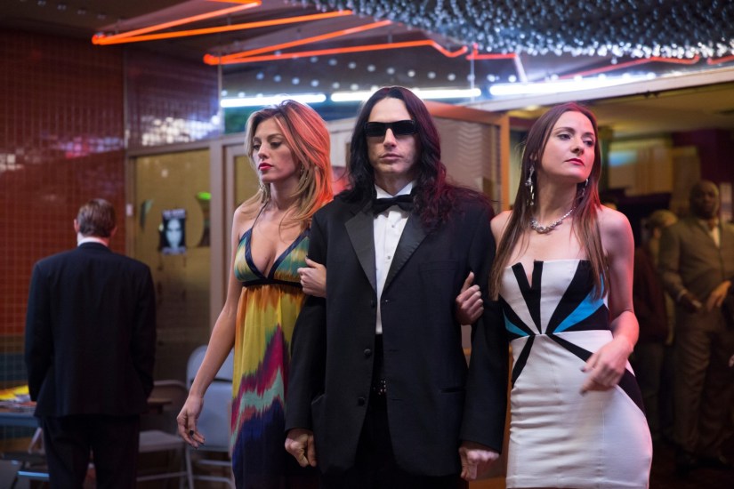 15 ans plus tard, James Franco adapte le livre The Disaster Artist écrit par Greg Sestero et Tom Bissel et permet au public de découvrir un peu plus le mystère qui entoure Tommy Wiseau, osant s’approprier le rôle titre. Un choix étonnant et un peu inquiétant, connaissant l’humour souvent régressif de James Franco et de sa clique composée, entre autres, de Seth Rogen, confirmé par beaucoup de ses choix de rôles. Du coup, même s’il n’en est pas à son premier film et qu’il a déjà écrit et réaliser de nombreuses œuvres plus ou moins populaires, The Disaster Artist n’était pas entré dans mon collimateur tant je m’attendais à un film collégial, plutôt moqueur et exclusif (probablement parce que je suis restée marquée par C’est La Fin). C’est seulement lorsque le film a été sélectionné aux Golden Globes qu’il a attiré l’attention générale, et la mienne – d’autant plus que James Franco a été sacré Meilleur acteur dans la catégorie comédie/comédie musicale.