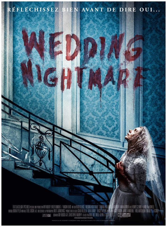 Après Action ou Vérité, c’est au jour d’un autre jeu anodin d’être transformé en terrain de jeu sanglant au service de l’angoisse. Je n’en dirai pas plus sur la nature du jeu, car j’ai découvert le film Wedding Nightmare sans avoir même regardé la bonne annonce et je vous conseille la même expérience. Si vous avez déjà fauté, ce n’est pas grave, car même si internet en révèle un peu trop à mon goût le film de Tyler Gillett et Matt Bettinelli-Olpin réserve pas mal de surprises et de rebondissements rafraîchissants pour permettre au public de s’amuser tout en étant rongé par le suspens.