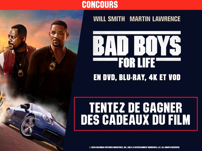À l’occasion de la sortie du film Bad Boys For Life, d’Adil El Arbi et Bilall Fallah sur tous vos écrans, Dunno The Movie et Sony Pictures Home Entertainment s’associent pour vous faire gagner des DVD et Blu-ray du film, ainsi que des T-shirts et un bomber exclusifs à l’image du film !
