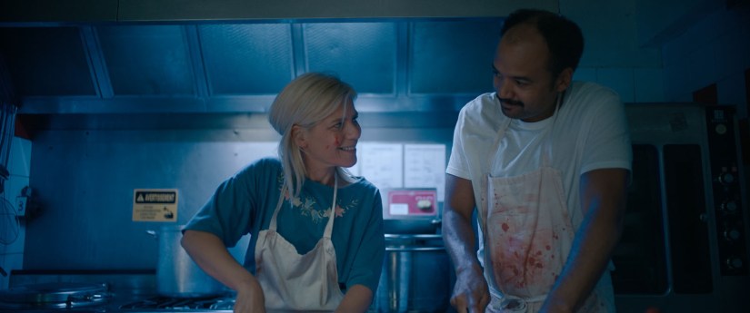 Une chose est sûre, c’est que Barbaque ne peut pas laisser indemne à cause de sa tonalité crue et frontale, qui détonne avec son fond de romcom un poil perverse. On pourrait dire que c’est aussi l’histoire d’un homme qui cherche aussi bien à se reconquérir qu’à reconquérir sa femme tant Barbaque associe le macabre au charnel, comme si le film osait célébrer le retour à l’état primal de ses personnages. Pour ma part, j’ai trouvé le film aussi hilarant que dérangeant, dans sa façon de jouer avec les codes et le politiquement correct, tout en dénonçant un combat qui se mord la queue et s’enlise dans des actions sourdes dont on ne retient que le sensationnel.