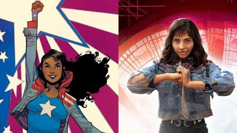 Dans les comics, America est une princesse, citoyenne d’un univers parallèle utopique. Initialement, ses mères se sont sacrifiées pour sauver le Parallèle Utopique d’être englouti par des trous noirs et America a hérité de leurs pouvoirs. Refusant d’être reine, elle part à l’aventure dans différentes dimensions avant de débarquer sur la Terre-616 et rejoindra l’équipe des Young Avengers. Elle est connu sous différents noms, comme Miss America, Ms America et même Captain America.