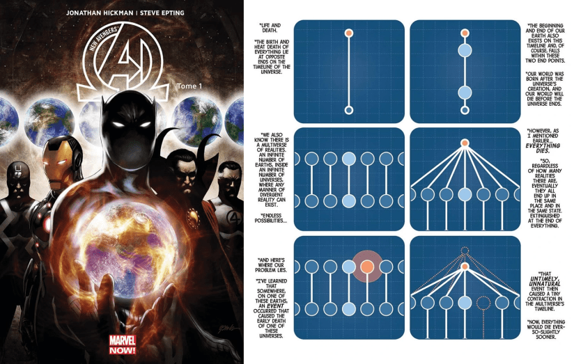 Une incursion, c’est quoi ? C’est un événement cosmique (déclenché par les Beyonders) qui entraîne la collision entre deux Terres d’univers différents les unes à la suite des autres, ce qui entraîne la mort de trillions de personnes et, in fine, la fin des temps. Le comics référence est New Avengers – Tout Meurt, écrit par Jonathan Hickman, qui démarre avec Black Panther assistant à une tentative d’incursion, jusqu’à ce qu’un personnage nommé Black Swan (Yabbat Ummon Turru) détruise l’autre Terre avec une machine.