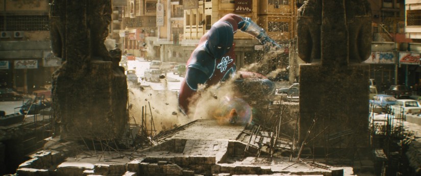 Objectivement (oui), le film tient ses promesses. Dwayne Johnson avait annoncé du costaud et un changement de règles du jeu, c’est bien le cas. Le (anti-)héros est bien décidé à affirmer son retour sur ses terres d’origine et ça se traduit par un body count qui ne cesse de grimper (le nouveau héros DC est un meurtrier PG-13, youpi). Black Adam en fait des caisses sur la glorification de son personnage, lui offrant des scènes d’actions surléchées, blindées de micro-ralentis admiratifs sur son physique hyper-musclé, son air patibulaire et chacune de ses démonstrations de force hyper testostéronées. Les raisons de sa colère s’accumulent sur son passage : entre son pays opprimé par des terroristes (?), des super-héros qui tentent de l’arrêter et un artefact capable de littéralement déclencher l’enfer sur Terre, Black Adam n’en finit plus de se bastonner. C’est une déferlante d’affrontements et d’effets spéciaux plus ou moins lisibles qui s’emparent des 2h05 du film, pour épater le public et montrer qui est le maître.