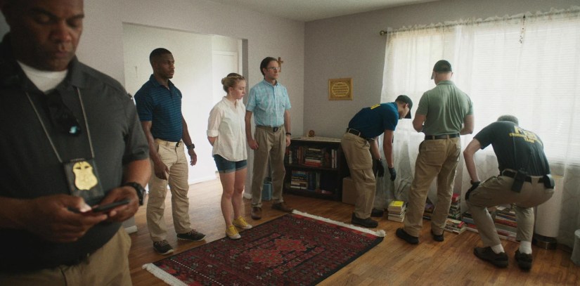Tina Satter soigne la réalisation : tournage dans les lieux réels, et surtout sur une location afin de resserrer encore plus le cadre qui nous enferme dans un huis-clos pendant la seconde partie du film. Des inserts de documents officiels et d’enregistrements audios, ainsi que la censure de certains passages viennent appuyer le caractère à la fois sérieux et véridique de l’histoire. Là où d’autres réalisateurs auraient peut-être rajouté plus de contexte avant d’en venir au fait, j’ai aimé la façon dont Reality entre dans le vif du sujet sans s’encombrer de détails qui auraient pu vendre la mèche trop tôt.