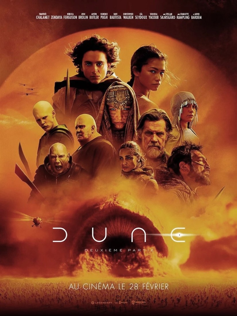 Initialement prévu pour fin 2023, la suite tant attendue de Dune est enfin arrivée en salles, précédée d’un sacré battage médiatique. En effet, si les acteurs n’ont fait aucun plateau ni interview durant la grève des scénaristes, toutes les communications papier ou vidéos pré-enregistrées n’ont pas pu être annulées et sont sorties dès fin 2023, ce qui ce qui explique cette publicité qui a duré des mois, donnant l’impression que le film avait été validé avant même sa sortie (ce qui est un peu le cas aussi). Mais bon on ne va pas chipoter, car nombreux sont les blockbusters qui font campagne des mois, voir un an à l’avance et, de plus, lorsque que la grève terminée, nous avons été béni par des red carpets incroyables où notamment l’actrice Zendaya apparaissait à chaque fois avec des tenues spectaculaires. Mais bon… je m’éloigne du sujet.