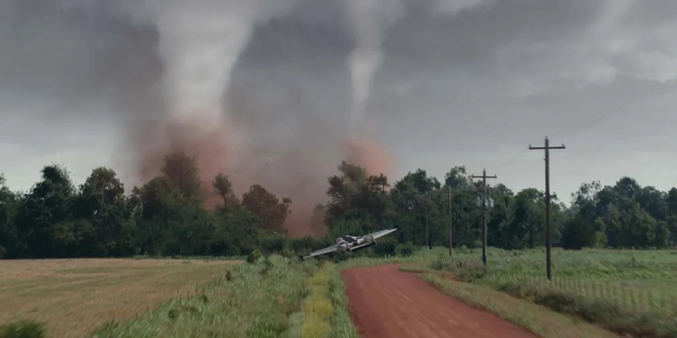 Potentiellement par ce que c’est mon enfance, mais les blockbusters américains des années 90-2000 sont des petits plaisirs non-coupables et assumés, que j’aime revisité avec toujours la même exaltation d’antan. C’est l’époque où les effets spéciaux semblaient incroyables et démesurés, qui animaient des films XXL qui ouvraient des fenêtres géantes vers l’imaginaire. De cette époque où les extra-terrestres pouvaient nous envahir à tous moment, où des astéroïdes fonçaient tout droit sur Terre, où des scientifiques fous faisaient revivre des dinosaures, créait des lézards géants ou des requins trop intelligents, il y avait aussi un ennemi plus silencieux mais inéluctable : la nature quand elle se déchaine. Du Pic de Dante à 2012, en passant par Volcano, Pluie d’Enfer ou encore Le Jour d’Après, il y a évidemment Twister de Jan de Bont (1997) au rang des films cultes de ce sous-genre d’action.