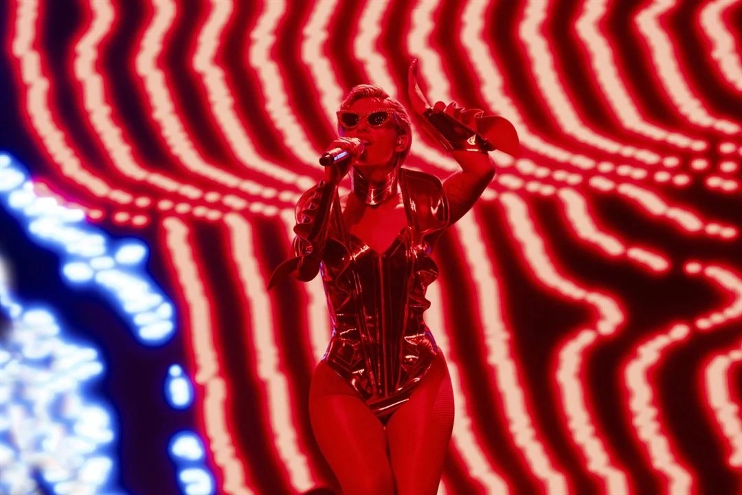 Au casting : Naomi Scott (Aladdin, Power Rangers, Charlie’s Angels…) continue de faire des choix discutables et donne à nouveau de la voix, que ce soit pour chanter ou pour hurler à la mort. On appréciera son air écarquillé même si le personnage manque de substance et se retrouve encombré par un storytelling qui n’apporte rien (on s’en fiche de son accident et de sa toxicomanie, tant cela importe peu dans le résultat…). Autour d’elle, on retrouve Rosemarie DeWitt (La La Land, The Boys, The Staircase…) qui cachetonne en “momager” (contraction de mom + manager, à l’instar de Kris Jenner) castratrice à la coupe de cheveux improbable, tandis l’ensemble est composé de second couteaux interchangeables, (dés)incarnés par Dylan Gelula (Dream Scenario…), Raúl Castillo (Un Homme en Colère…), Miles Gutierrez-Riley (The Wilds…) ou encore Lukas Gage (Dead Boy Detectives…).