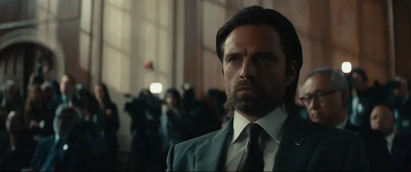 - l’apparition de Bucky : potentiellement LE seul secret bien gardé du film, Sebastian Stan nous offre un caméo inattendu dans le film pour venir soutenir son poto à l’écran comme à la ville. Si l’amitié entre les acteurs n’est plus à prouver, c’était un peu tristoune de voir Sam et Bucky séparés le temps d’un film. Heureusement, Marvel Studios sont les rois du fan service et le plus sexy des soldats de l’Hiver (le seul en vie, en fait) est au rendez-vous, nous lâchant même un mignontissime “I love you, buddy” (ce qui semble plutôt étonnant vu le perso, mais bon), tandis que Sam lui souhaite bonne chance en l’appelant “congressman” (équivalent de sénateur en français) – sous-entendant une carrière politique pour Bucky ? C’est peut-être pour ça qu’on le voit en costard dans un tribunal dans la bande-annonce de Thunderbolts* Affaire à suivre… Et peut-être qu’Anthony Mackie fera aussi une apparition dans le film de son pote. Pow pow, pow pow pow !