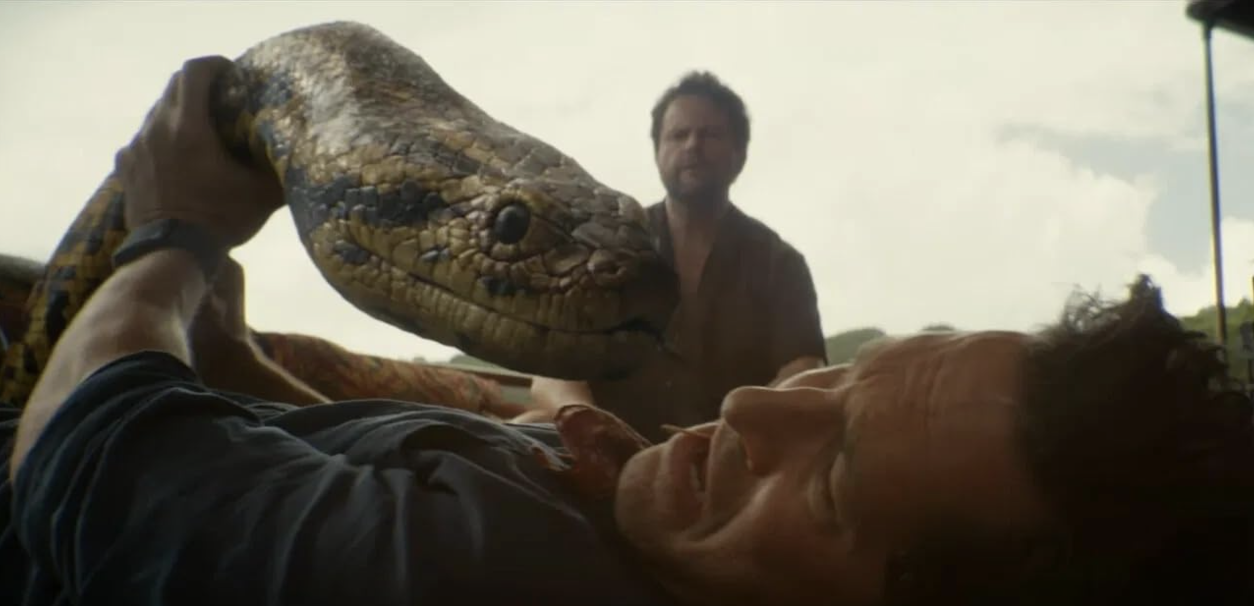 Dans son délire d’hommage, Anaconda rate surtout plusieurs occasions d’assumer pleinement ce qu’il est. À force de vouloir être une comédie d’action décomplexée, le film devient décousu, bâcle ses clins d’œil à l’original et le fameux Anaconda géant apparait et disparaît (à vitesse variable) seulement pour les bons vouloirs d’un scénario contorsionniste, au lieu d’être le véritable antagoniste tout du long. Et c’est quand même un comble : pour un film qui s’appelle Anaconda, et qui bénéficie de presque trente ans d’évolution technologique en matière d’effets spéciaux, le serpent est à la fois trop discret et à peine crédible. Les VFX sont visibles, le monstre est constamment planqué dans des scènes nocturnes et l’ensemble manque cruellement d’impact.