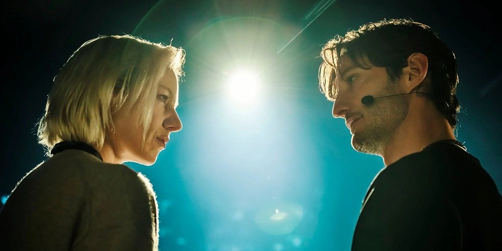 Sur le papier, le film a tout pour disséquer les mécanismes de l’emprise moderne. À l’écran, pourtant, le résultat reste étonnamment sage. Car Gourou survole plus qu’il n’explore. Le film observe la chute d’un coach au sommet de son influence sans jamais réellement interroger la nature de ce pouvoir. Yann Gozlan aligne les signes extérieurs du phénomène : maîtrise de l’image, slogans creux déguisés en métaphores inspirantes, foules galvanisées ou opposants politiques qui privilégie les diplômes au street savvy. Puis, rapidement, le film esquisse des thèmes plus profonds : le mensonge, la manipulation, la paranoïa ou encore le piège d’une célébrité bâtie sur du vide. Autant de pistes prometteuses, lancées comme des perches… rarement attrapées.